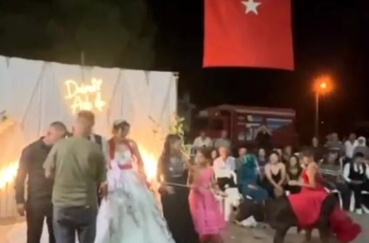 Muğla'nın Yatağan ilçesinde yapılan bir düğünde, damat Ramazan Karadağ'a eniştesi tarafından ikram edilen buzağı,...