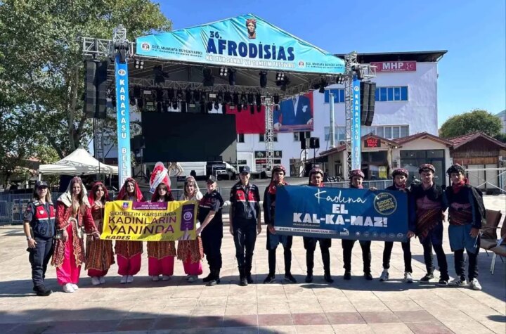 Karacasu ilçesinde düzenlenen 36. Afrodisias Kültür, Sanat ve Tanıtım Şenliği'nde jandarma takımları, vatandaşlara bayana...