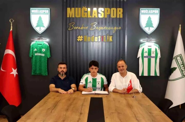Muğlaspor, 2006 doğumlu sağ bek Emre Şimşek'i A Kadro takımına kazandırdı. İmza törenine katılan...