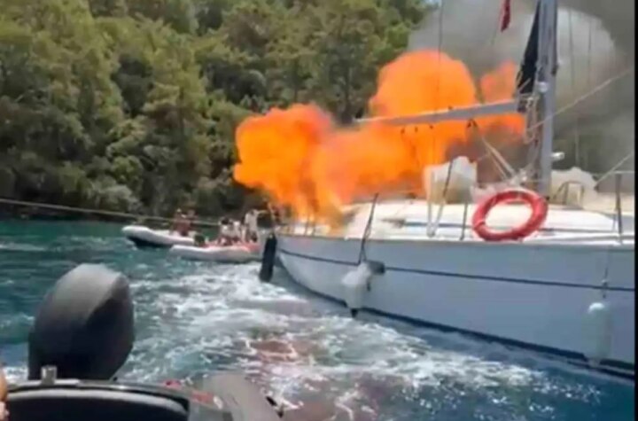Muğla'nın Dalaman ilçesinde Sarsala Koyu'nda bir tekne birdenbire alev aldı. Yangının nedeni şimdi belirlenemedi,...