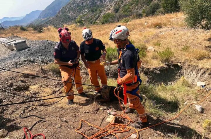 Muğla'nın Datça ilçesinde 5 metrelik kuyuya düşen köpek, Mahalle Afet Gönüllüleri Acil Müdahale takımı...
