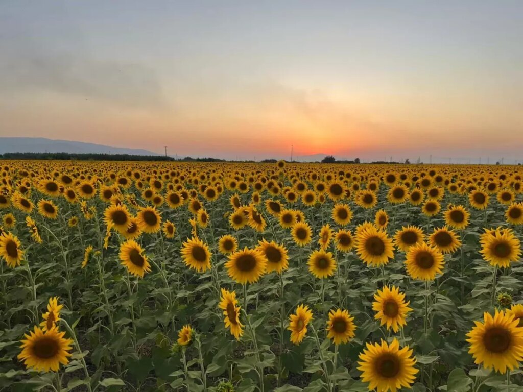 Aydın'ın Efeler ilçesindeki ayçiçeği tarlaları, bilhassa gün batımında sunduğu harika görüntüyle doğaseverler ve fotoğraf tutkunları için tanınan bir yer haline geldi.