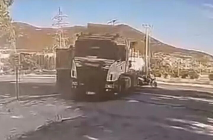 Milas ilçesinde, önünde ani hareket yapan motosiklete çarpmamak için direksiyon kıran TIR, yol kenarına...