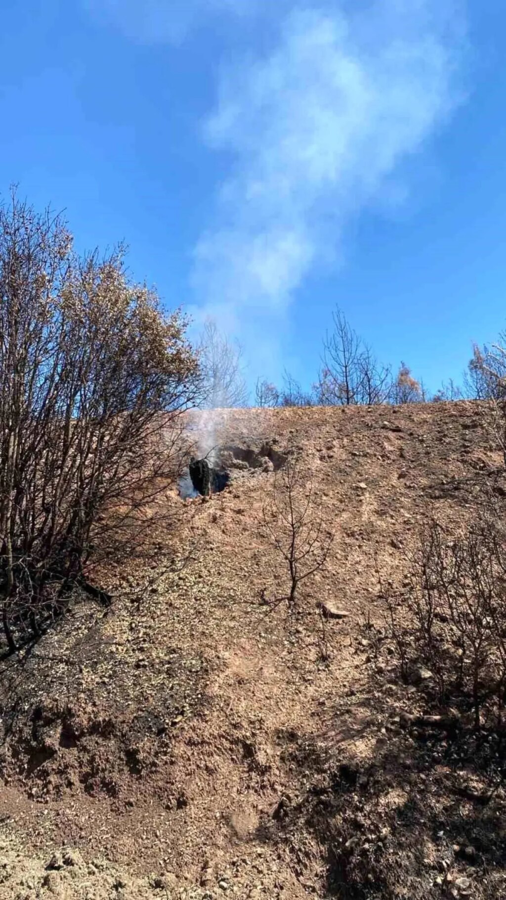 Denizli’nin Buldan ilçesinde yaşanılan orman yangınının söndürülmesinin akabinde halk ortasında dikme diye tabir edilen kökler için için yanmaya devam ediyor.
