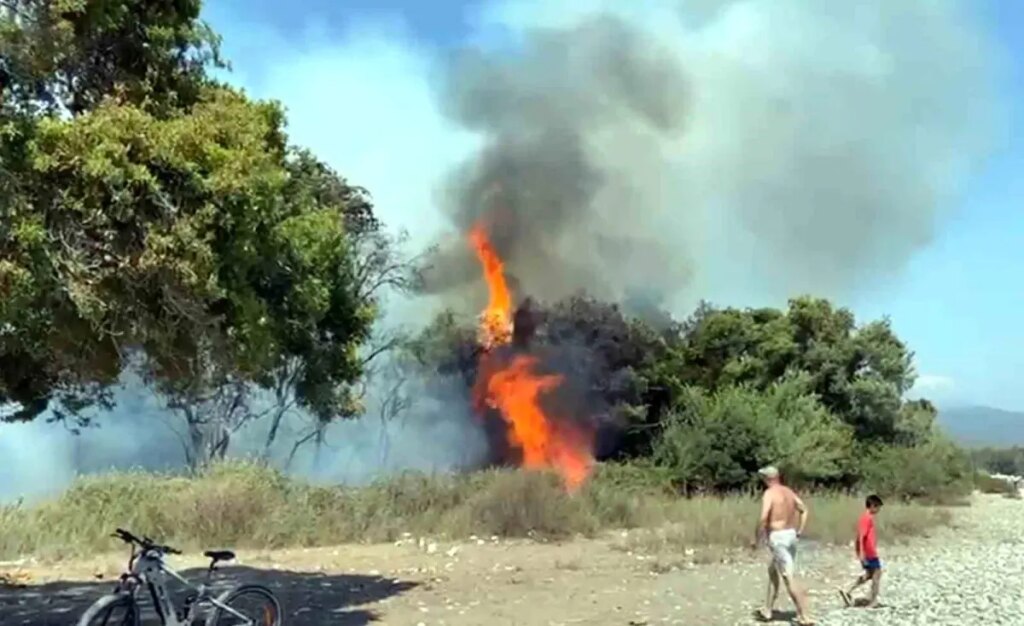 Fethiye‘nin günübirlik tatil koylarından Karaot Aymaz kıyısında iki gün evvel kıyıya yakın bölgede orman yangını çıktı. Yangına birinci müdahale kıyıda bulunan tatilciler elleri ile toprakları alevlerin üzerine atması ile başladı.