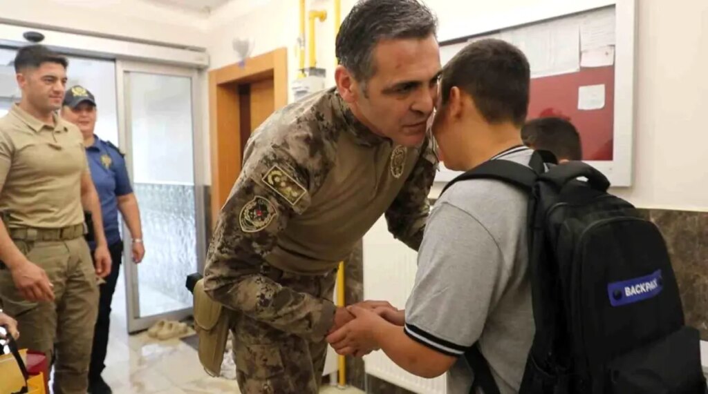 Kayseri Vilayet Emniyet Müdürü Atanur Aydın, şehir polis memuru Ramazan Kırboğa’nın çocuklarını okulun birinci gününde yalnız bırakmayarak konutlarından aldı ve sınıflarına bıraktı.