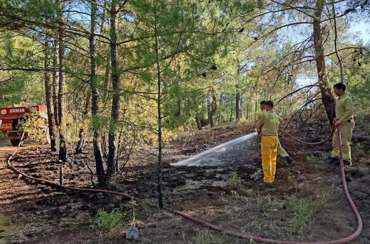 Muğla'nın Menteşe ilçesinde, Akçaova Mahallesi'nde çıkan orman yangını, vatandaşların ihbarı üzerine süratli bir müdahale...