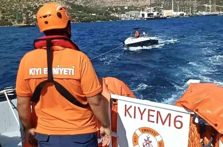 Muğla'nın Bodrum Limanı açıklarında makine arızası nedeniyle sürüklenen ve içinde 2 kişi bulunan tekne,...