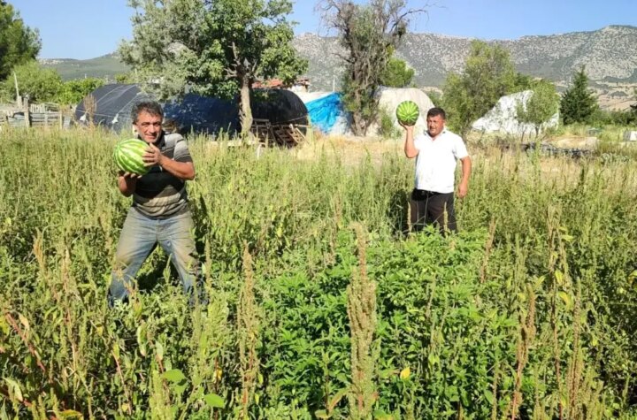 Denizli'nin Acıpayam ilçesinde karpuz üreticisi Yüksel Şan, piyasa fiyatlarının düşmesi nedeniyle tarlasını halka açarak,...