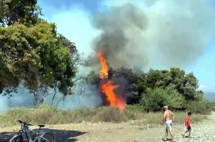 Fethiye'nin Karaot Aymaz kıyısında meydana gelen orman yangınına müdahale eden gruplar, tatilciler tarafından alkışlarla...
